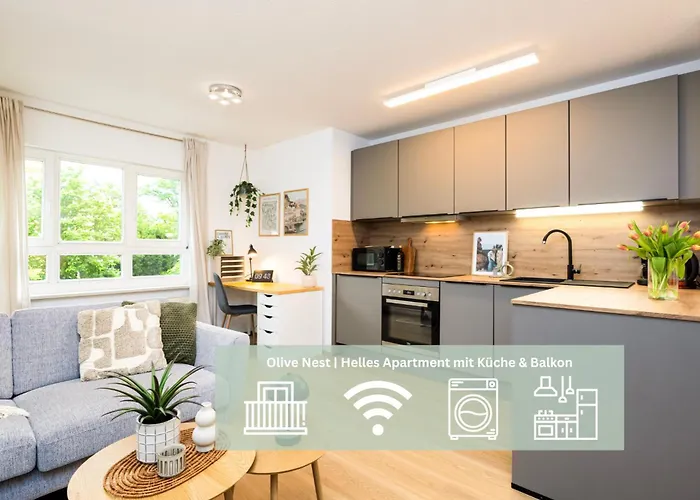 Apartament Staytime - Olive Nest Drezno o powierzchni 45 m² położony jest w dzielnicy Leubnitz i oferuje widok na ulicę. Pasaż Sztuki znajduje się w odległości 4 km od, a goście mogą również odwiedzić Amfiteatr Junge Garde w odległości jedynie 10 min piechotą od tego apartamentu.